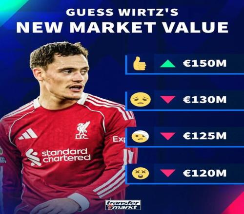 北京時間10月16日,德轉預熱了利物浦球星維爾茨的身價更新,并給出了四個選項。