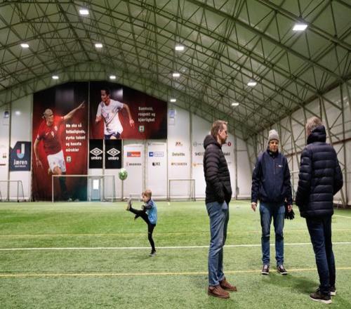 我們從耶爾哈倫(J?rhallen)開始,這是一座幾年前重建的室內(nèi)訓(xùn)練設(shè)施,因哈蘭德(的意外到訪而重新開放(當(dāng)時(shí)在那里訓(xùn)練的當(dāng)?shù)睾⒆佣疾桓蚁嘈懦霈F(xiàn)在他們面前的長發(fā)巨人真的是哈蘭德)。建立這座室內(nèi)球場的目的是為了讓球員們能夠在干爽的環(huán)境下進(jìn)行訓(xùn)練,因?yàn)榕餐倪@個(gè)地區(qū)氣候溫和多雨。它每天都向所有人開放,供人們來磨練球技——而且是免費(fèi)的。在里面,一名最近簽約的來自尼日利亞的年輕球員正在大廳里來回奔跑,練習(xí)腳下。