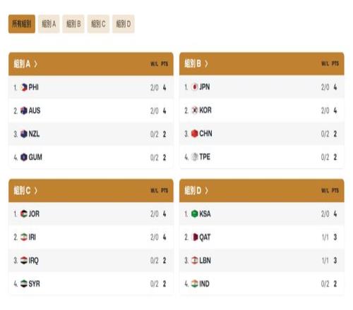 男籃世界杯亞洲區(qū)預選賽分組與積分/圖片來源:FIBA官網(wǎng)